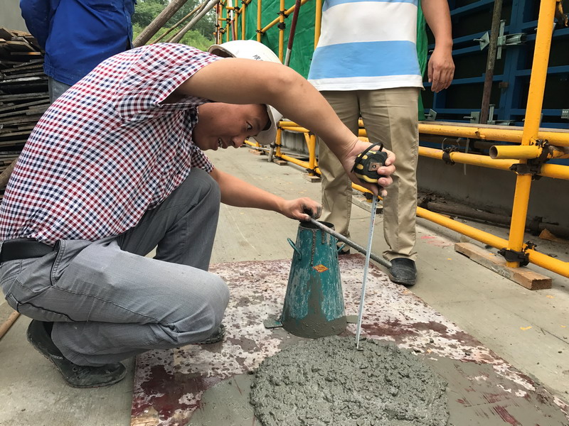 成都麓湖生態(tài)城A2-2地塊房屋建設(shè)欲使用清水混凝土,在建設(shè)前預(yù)先澆筑清水混凝土樣板間,要求使用C30清水混凝土。公司接到生產(chǎn)要求后,安排天府新區(qū)分公司為該項(xiàng)目供應(yīng)站點(diǎn),并積極組織技術(shù)團(tuán)隊(duì)進(jìn)行配合比和設(shè)計(jì)優(yōu)化和調(diào)整。為了達(dá)到理想效果,2017年5月公司技術(shù)副總工程師韓建國親自帶領(lǐng)技術(shù)團(tuán)隊(duì)到天府新區(qū)分公司站點(diǎn),就該區(qū)域的原材料特色進(jìn)行清水混凝土配合比的調(diào)整和優(yōu)化。采用施工方施工用模具制備混凝土墩塊,觀察清水混凝土成型效果;對(duì)比不同配合比下清水混凝土色澤差異;施工現(xiàn)場(chǎng)搭建試驗(yàn)墻體模板,現(xiàn)場(chǎng)同條件觀察混凝土成型效果,保證施工質(zhì)量。經(jīng)過反復(fù)的試驗(yàn)和調(diào)整以及和業(yè)主的溝通,最終確定最終配合比。2017年6月25日,樣板間如期澆筑完成,所澆筑的清水混凝土成型密實(shí)、色澤均勻,完美的展現(xiàn)了清水混凝土的質(zhì)感,成型效果得到業(yè)主和施工方的一致認(rèn)可。